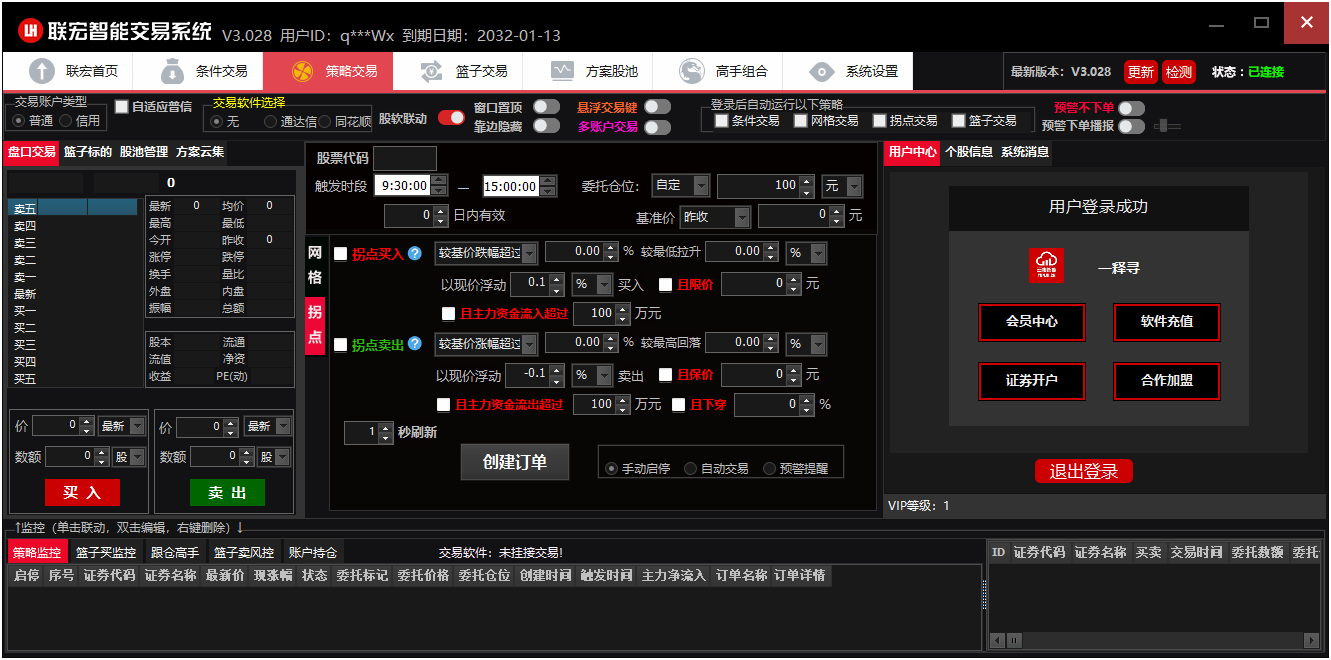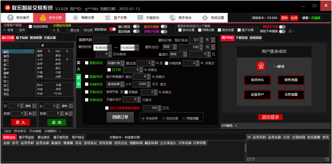 - 条件交易:突破/打板/开盘等组合交易