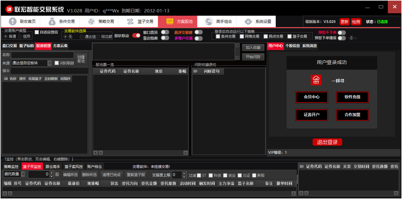 - 方案股池:云端策略库/专属股池